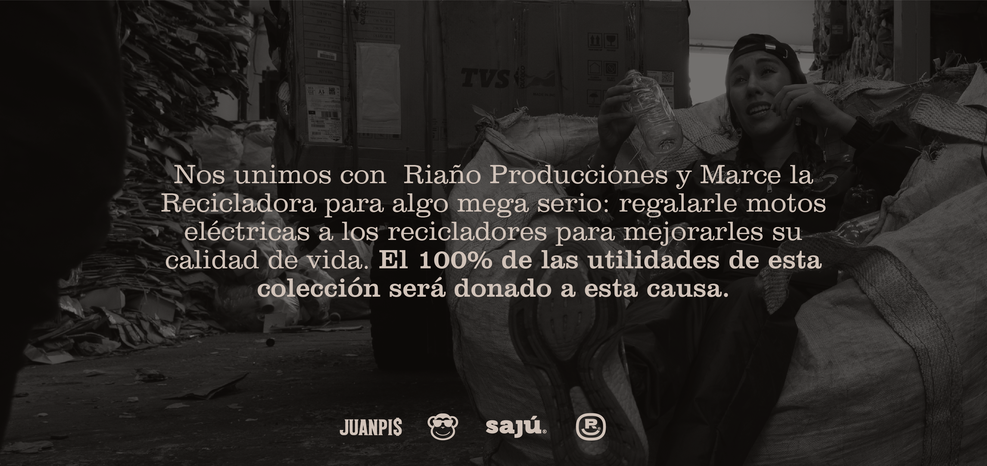 Con los mantecos de Riaño Producciones, Marce la Recicladora y Sajú nos unimos para algo mega serio: mejorarle la vida a los recicladores comprando motos eléctricas para que transformen sus carretas y, lit, no tengan que cargar la basura que usted genera, mk. Y usted dirá ¡That’s impossible! Pero lo haremos donando el 100% de las utilidades de mi colección de gafas.